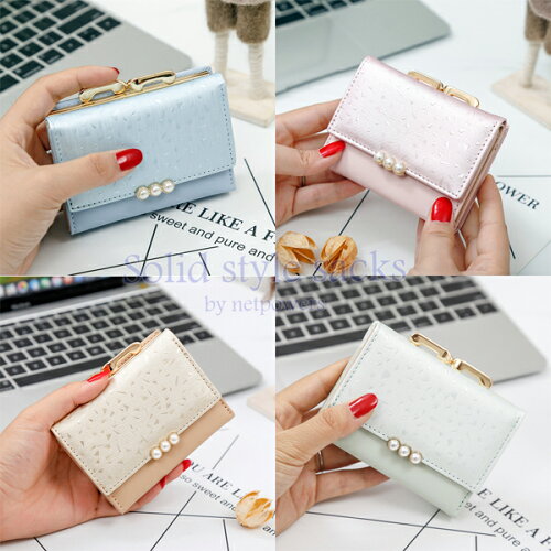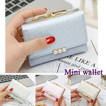 【10周年記念セール価格】 三つ折り ミニ財布 パールビジュー がま口 レディース 多機能 多収納 ミニウォレット 三つ折 財布 三つ折り財布 三つ折財布