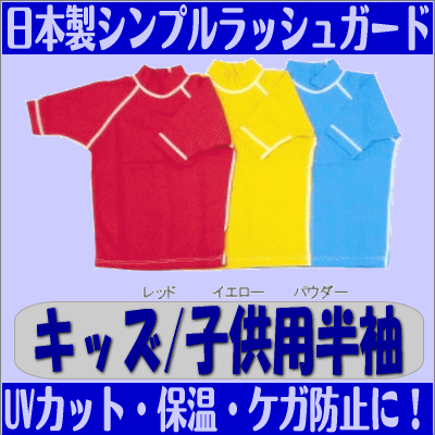 ラッシュガード キッズ 半袖 子供用 110/120/130/140/150 レッド/イエロー/パウダーブルー/ブラック/ネイビー 赤/黄色/青/黒/紺【代引不可】