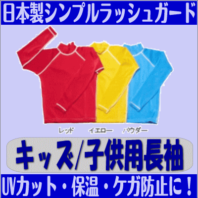 ラッシュガード キッズ 長袖 子供用 110/120/130/140/150 レッド/イエロー/パウダーブルー/ブラック/ネイビー 赤/黄色/青/黒/紺【代引不可】